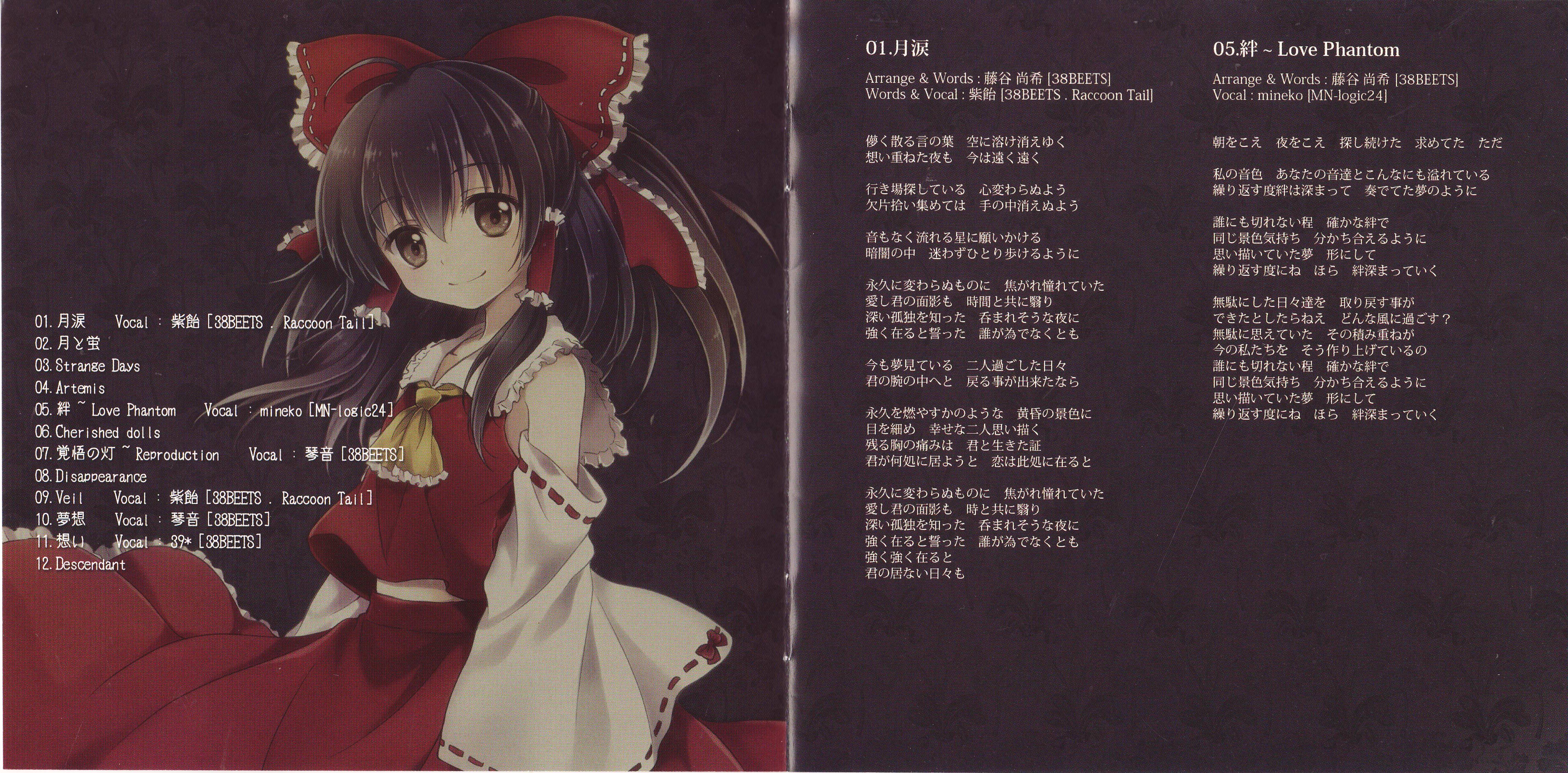 | - | (05) [mineko] 絆 ~ Love Phantom.flac | 33697235 | | 38BEETS | MOON | 5 | mineko | 絆 ~ Love Phantom | 96 | 256 | 1027 | 1049 | | flac | | | flac | 2025-07-06 00:17:01 |